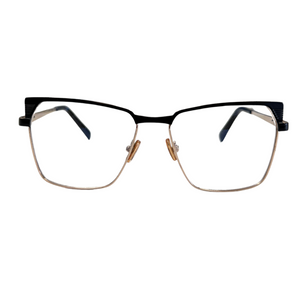 Avec ses lignes nettes et son contraste noir/doré, DANAE affirme une allure moderne et sophistiquée. Sa forme rectangulaire légèrement étirée structure le visage, tandis que la finesse de sa monture en métal doré lui confère légèreté et confort.