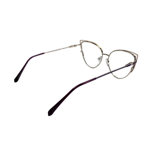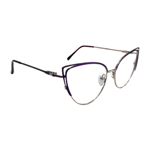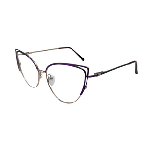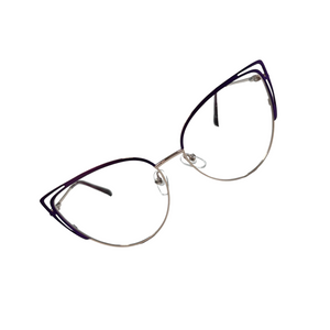 DELISSA se distingue par sa silhouette œil de chat sculptée avec modernité. Son contour violet profond, finement ajouré, ajoute une touche artistique et aérienne, tandis que la structure en métal argenté assure légèreté et solidité. Un choix idéal pour les femmes affirmées, qui aiment allier élégance, singularité et audace.