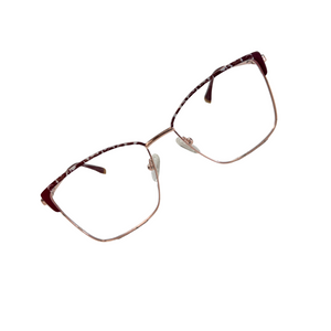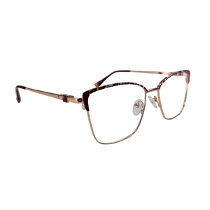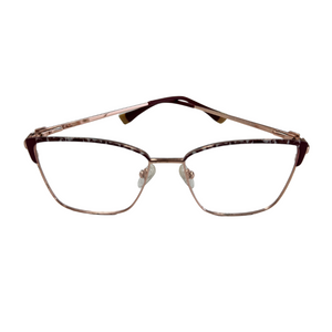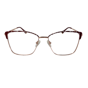 ELÉA charme au premier regard avec sa ligne supérieure marbrée, entre bordeaux profond et reflets ivoire. Sa structure en métal doré léger souligne délicatement le regard, tandis que la forme papillon légèrement angulaire allonge les traits avec finesse. Une monture à la fois classique et inattendue, parfaite pour affirmer sa personnalité.
