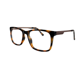 KIAN combine charme vintage et allure contemporaine. Sa monture en acétate effet écaille brune attire le regard avec ses nuances chaleureuses, tandis que ses branches métalliques bronze apportent une touche d’élégance industrielle. Une silhouette rectangulaire affirmée pensée pour l’homme moderne en quête d’un style à la fois classique et affirmé.