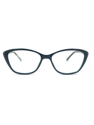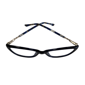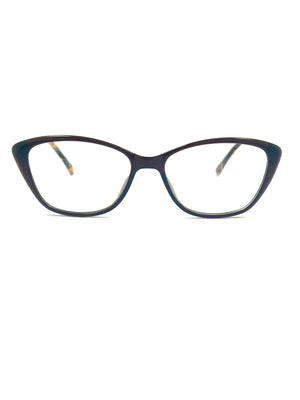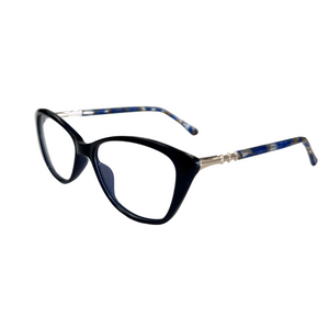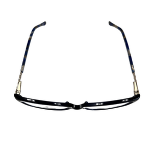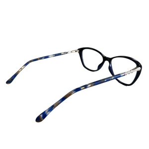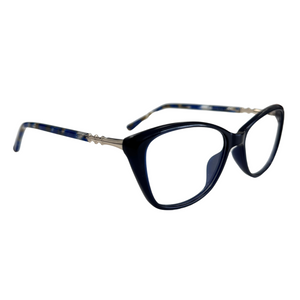 LILYA se distingue par sa monture bleu nuit profonde et ses branches aux accents marbrés bleutés, subtilement soulignées de détails dorés. Une alliance parfaite entre mystère et sophistication.