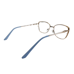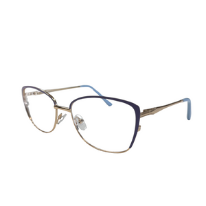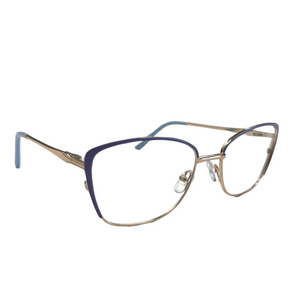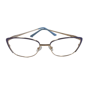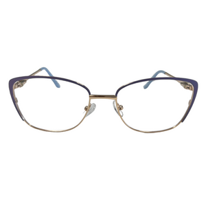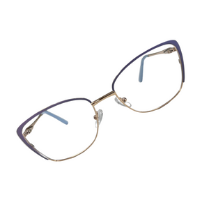 LIORA séduit par son design angulaire et délicat, mêlant finesse du métal doré et couleur douce. La face avant violette contraste élégamment avec les branches aux embouts bleu pastel, apportant une touche moderne et féminine.