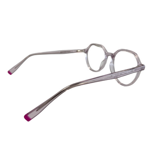 ✔ Monture en acétate transparente avec reflet lilas.