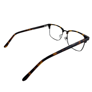 MARCO incarne l'équilibre parfait entre robustesse et raffinement. Sa structure métallique fine est sublimée par une partie supérieure en acétate effet écaille ou noir brillant, apportant une touche de caractère à une monture au design demi-cerclé. Les branches, elles aussi en acétate assorti, assurent un maintien confortable tout au long de la journée.