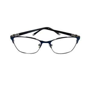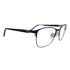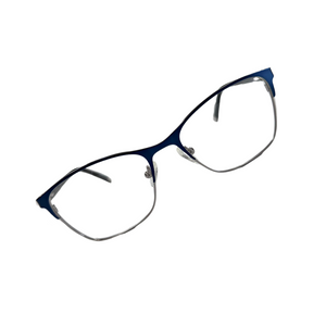 NAVINE évoque une élégance moderne, portée par un bleu nuit profond et des finitions argentées qui captivent discrètement le regard. Sa forme papillon subtile et ses branches noires texturées en font une monture au caractère affirmé, pensée pour les femmes confiantes, raffinées et audacieuses.