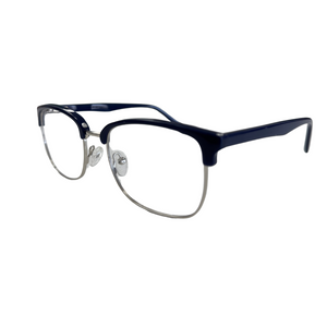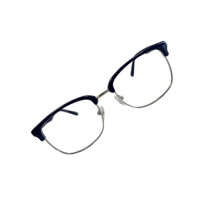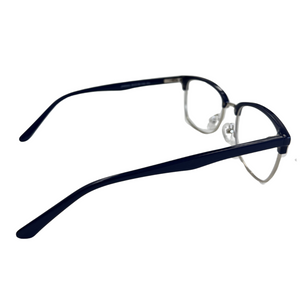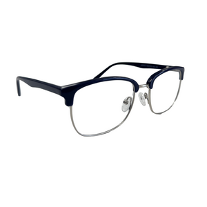 NAYLA associe l’élégance du métal argenté à la modernité du plastique bleu marine pour un équilibre parfait entre finesse et caractère. Sa forme rectangulaire légèrement arrondie convient à tous les visages et ajoute une touche contemporaine à ton look quotidien.