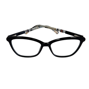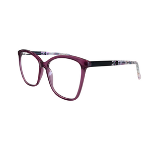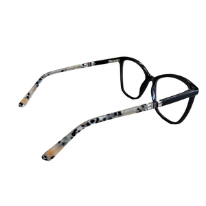 NEVIA joue la carte du contraste raffiné avec deux déclinaisons saisissantes : une monture noire intense aux branches marbrées ou un prune translucide subtilement coloré. Sa forme légèrement papillon épouse le visage avec douceur, idéale pour celles qui aiment allier simplicité et caractère.