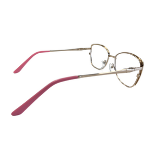 SERENA marie la douceur d’un rose mat élégant avec la finesse d’une monture métallique dorée. Sa forme œil-de-chat légèrement arrondie sublime les traits du visage tout en gardant une allure discrète et raffinée. Une monture pensée pour celles qui aiment les détails délicats et les touches pastel.